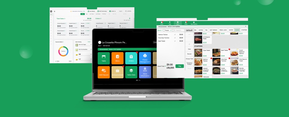 MPOS is currently providing Cloud POS system solutions and POS machines that focus on restaurant or coffee shop businesses with functions such as managing menus , managing promotional pricing, managing income and expense, orders and inventory, customers, and managing supplies, etc. So if you are interested, please contact us via phone number 011 223 319